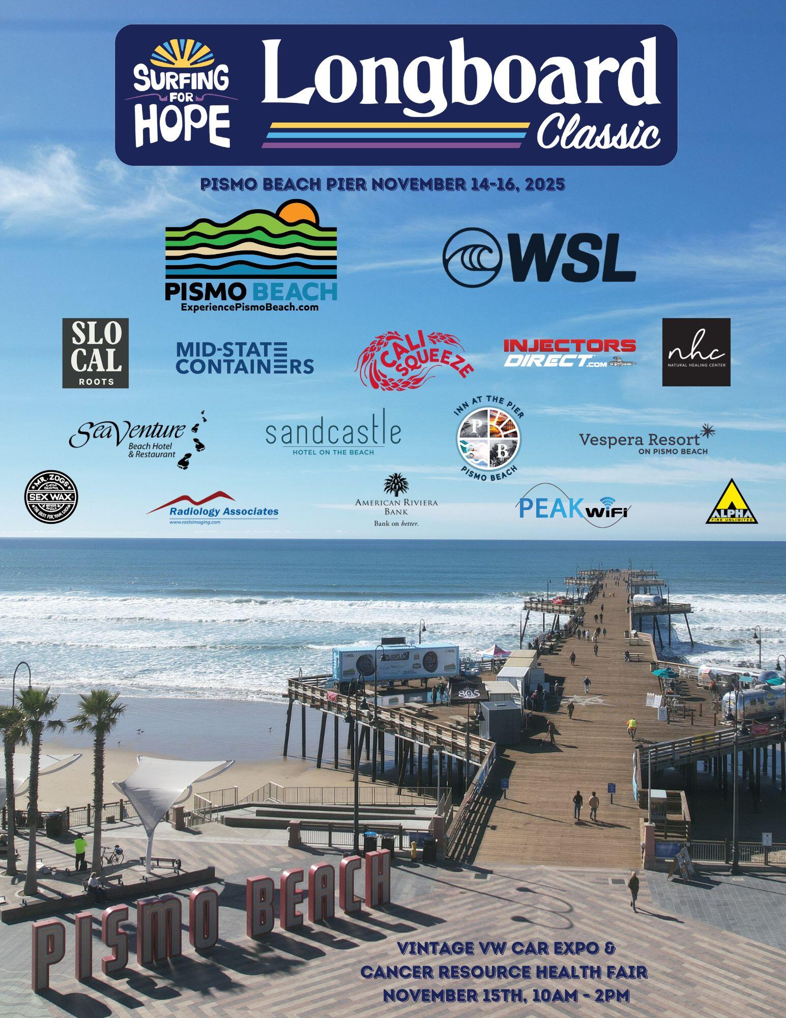 We are headed back to the Pismo Beach Pier for the 2025 Surfing For Hope Longboard Classic! Join us November 14, 15, and 16 as we welcome the World Surf League's best longboard surfers from the WSL North American Region.